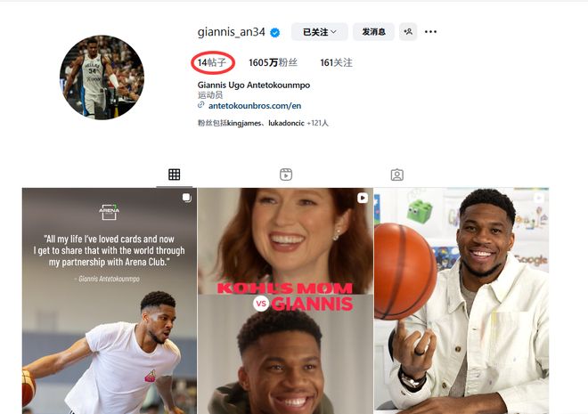 目前字母哥的IG賬號(hào)僅剩下14條帖子,其中前四條均為廣告或商業(yè)合作內(nèi)容。不過(guò)他仍保留了雄鹿2021年NBA總決賽奪冠以及上賽季贏得NBA杯的相關(guān)照片。