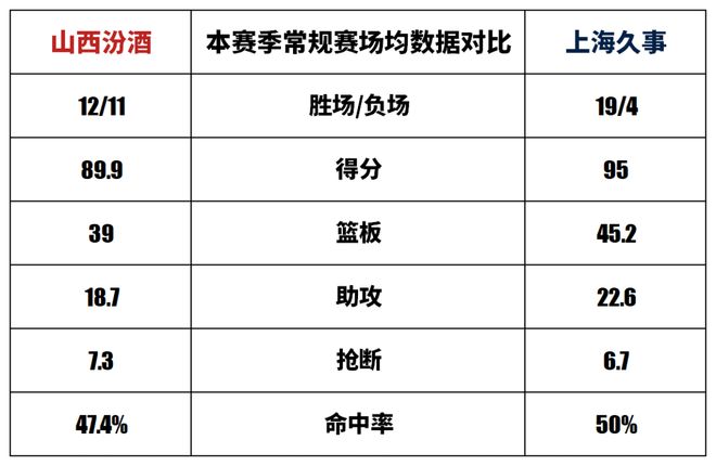本賽季常規(guī)賽場均數(shù)據(jù)對比