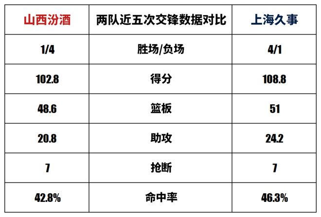 兩隊近五次交鋒數(shù)據(jù)對比