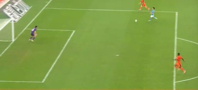 第25分鐘,列昂索前場接直塞球過掉馬鎮(zhèn)后推射被門線解圍?!?/p>