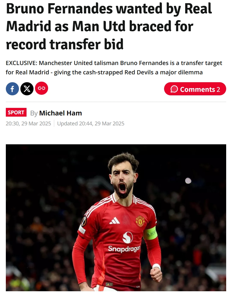 據(jù)英國(guó)《每日星報(bào)》獨(dú)家消息,皇馬可能考慮向曼聯(lián)支付9000萬(wàn)英鎊的轉(zhuǎn)會(huì)費(fèi),以挖角B費(fèi)。