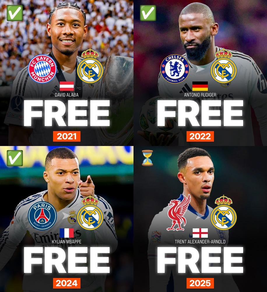 - 姆巴佩1.8億?皇馬免簽4人身價(jià)3.5億歐:7500萬阿諾德今夏加盟?