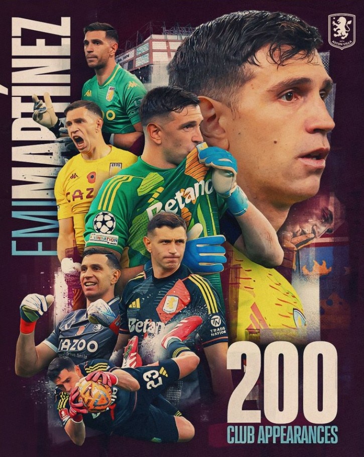 這是馬丁內(nèi)斯代表維拉各項賽事第200次出場,在此前的比賽中他為球隊完成63場零封,場均失球1.22球。