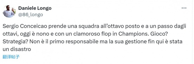隆戈寫道:“孔塞桑接手了一支排名聯(lián)賽第8名,并且?guī)缀鯐x級(jí)歐冠16強(qiáng)的球隊(duì),如今球隊(duì)排名聯(lián)賽第9名,歐冠慘淡出局。比賽風(fēng)格?戰(zhàn)術(shù)策略?他不是首要責(zé)任人,但到目前為止,他的執(zhí)教是一場(chǎng)災(zāi)難。”
