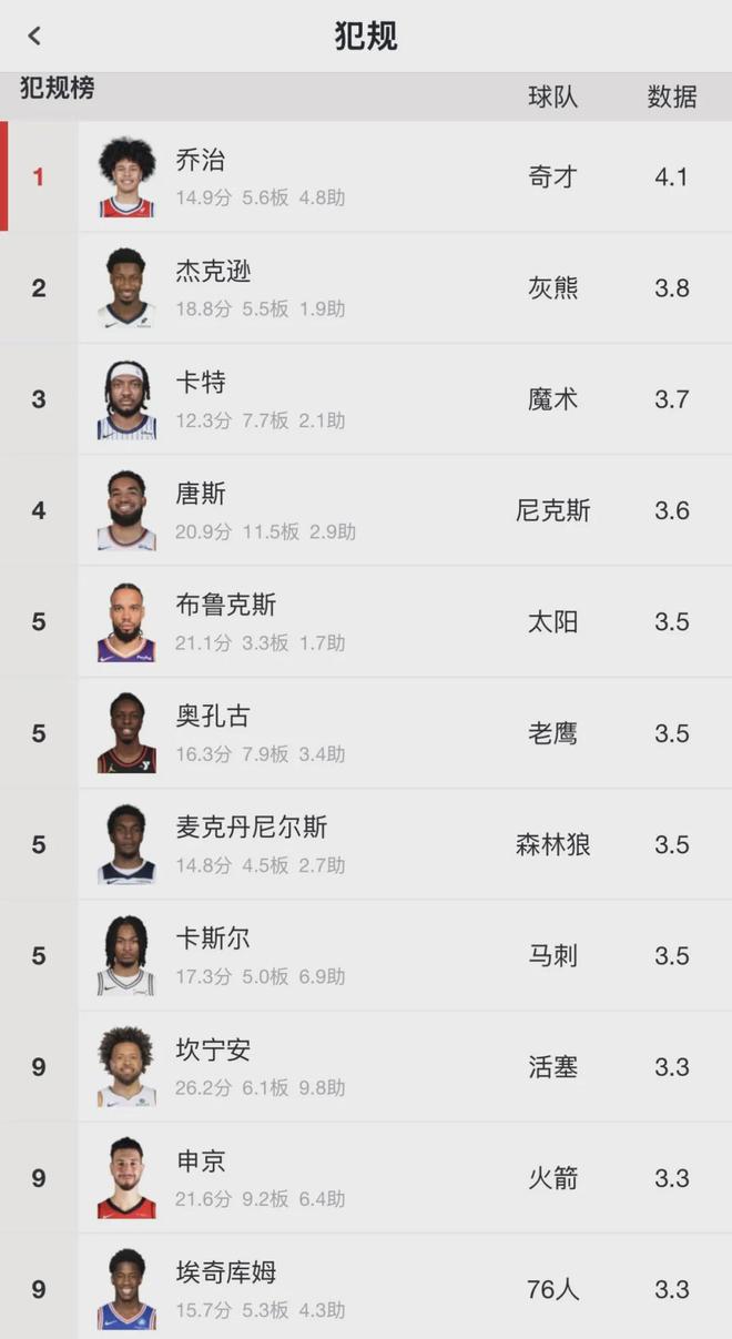 NBA生涯至今,3J場(chǎng)均只有5.5個(gè)籃板球,最高的一個(gè)賽季場(chǎng)均6.8籃板,最少的一個(gè)賽季場(chǎng)均4.6籃板。生涯場(chǎng)均3.7次犯規(guī),最少的一個(gè)賽季場(chǎng)均3.5犯規(guī),最多的一個(gè)賽季場(chǎng)均4.1犯規(guī)。本賽季3J場(chǎng)均3.8次犯規(guī),聯(lián)盟第二多!