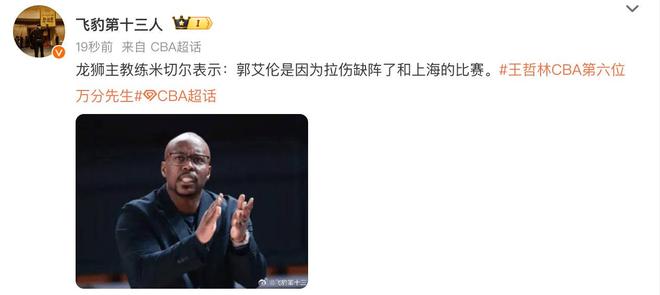 首先第消息,分享一下郭艾倫復出又拉傷的情況。最近廣州隊迎來了對戰(zhàn)強隊上海隊的比賽,郭艾倫在賽前還和張鎮(zhèn)麟他們打了招呼,結果在比賽開始之后卻沒有登場。最終廣州隊是大比分輸給了上海隊,遭遇潰敗。