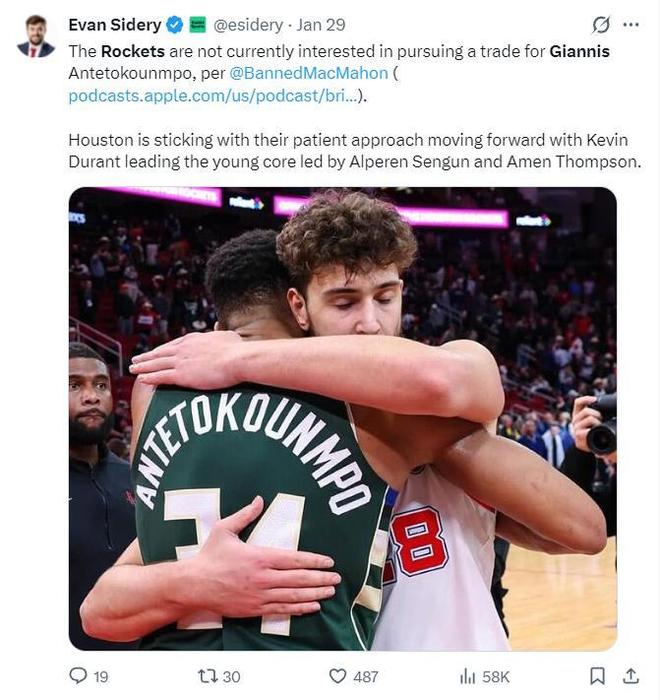 "如果字母哥真來(lái)火箭,建議直接交易哈登換回幾個(gè)首輪!"
