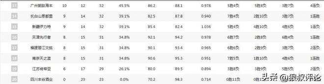 從挑選的外援到本土球員綜合實(shí)力,廣廈,廣東,上海位居前三是符合外界的預(yù)期,但北京跌至第七出乎意料,遼寧更是從上個賽季的爭冠熱門,跌到季后賽附加賽的守門員名額,山西,新疆都由于各種問題排名靠后,寧波成為第一階段最大的黑馬,四川由于欠薪風(fēng)波達(dá)到了0勝23負(fù)的慘淡戰(zhàn)績。