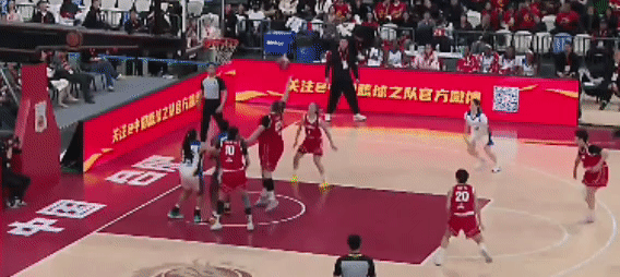 比賽開始:陳明伶跳球,球權給到張曼曼,中國隊的第一次進攻被對手限制住。但是很快的,楊舒予一個快速突破,上籃拿分: