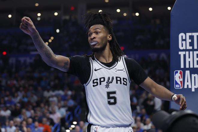 狂轟40分12板12助超級(jí)大三雙,4號(hào)秀卡斯?fàn)柵qR大戰(zhàn)刷爆紀(jì)錄搶?xiě)蛭陌?!馬刺隊(duì)4大新星齊暴走天賦溢出。