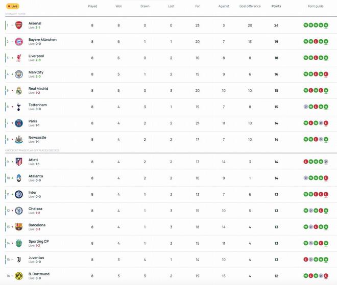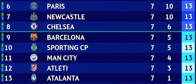 歐冠聯(lián)賽階段最后一輪18場同開,賽前6-13名的八支球隊同積13分,對前八的直通名額展開了激烈爭奪。不過半場過后,八支球隊里僅曼城取得了領(lǐng)先。