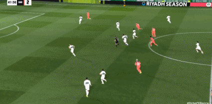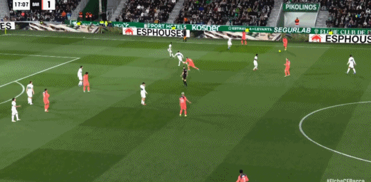 第82分鐘,萊萬分球,亞馬爾打門偏出