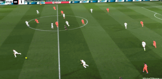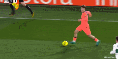 第40分鐘,德容冷靜回做,費蘭-托雷斯推射破門,巴薩2-1!