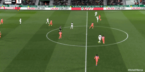 第44分鐘,巴薩好機會不斷,費爾明打門又高出