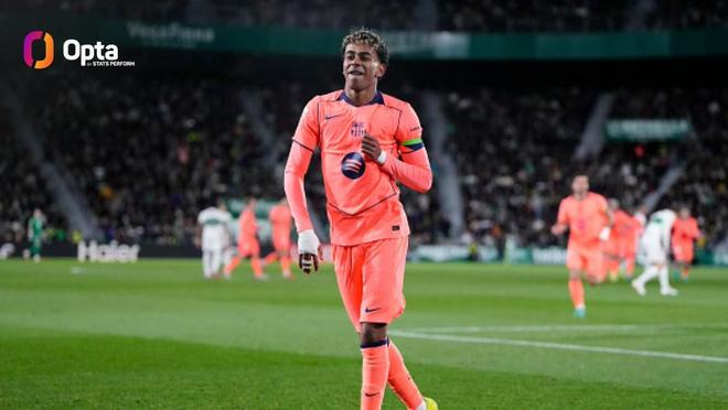 此役對陣埃爾切打入一球后,18歲的巴薩前鋒亞馬爾在西甲生涯出場91次已經(jīng)打進23球,已經(jīng)追平了21世紀五大聯(lián)賽中一名球員在19歲之前的最佳進球紀錄——這一紀錄由姆巴佩保持(54場法甲比賽打進23球)。