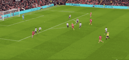 第41分鐘,利物浦在前場(chǎng)連續(xù)傳球,維爾茨利用節(jié)奏的變化連過(guò)三人后傳中,埃基蒂克包抄破門(mén)。