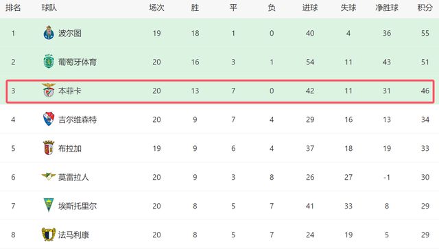 本輪過(guò)后,本菲卡在葡超繼續(xù)保持不敗。遺憾的是,前20輪踢完,他們足足有7場(chǎng)平局。也正是因?yàn)槠骄痔?,?dǎo)致本菲卡目前在先賽一場(chǎng)的情況下,落后榜首的波爾圖9分之多,一旦后者本輪能夠在客場(chǎng)拿下卡薩比亞,那雙方的差距將拉大到12分,這個(gè)差距足以讓本菲卡絕望。