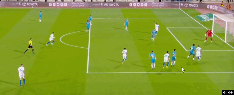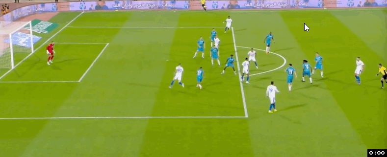 第69分鐘,利雅得新月中路快速反擊,本澤馬禁區(qū)弧頂處插上突入禁區(qū)獲得半單刀良機(jī),本澤馬投桃報(bào)李也給馬爾科姆做了個(gè)好球,馬爾科姆輕松將球擋入空門,利雅得新月4:0領(lǐng)先。4分鐘后阿科多后場還失誤送上大禮,馬爾科姆斷球后突入禁區(qū)輕松過掉豪薩維獲得單刀機(jī)會(huì),馬爾科姆無私橫傳,多薩里將球擋入空門,利雅得新月5:0領(lǐng)先。補(bǔ)時(shí)階段,利雅得新月快速反擊,多薩里接球狂奔突到禁區(qū)弧頂處獲得單刀機(jī)會(huì),多薩里擠開回防球員冷靜推射得手,利雅得新月將比分鎖定在6:0。