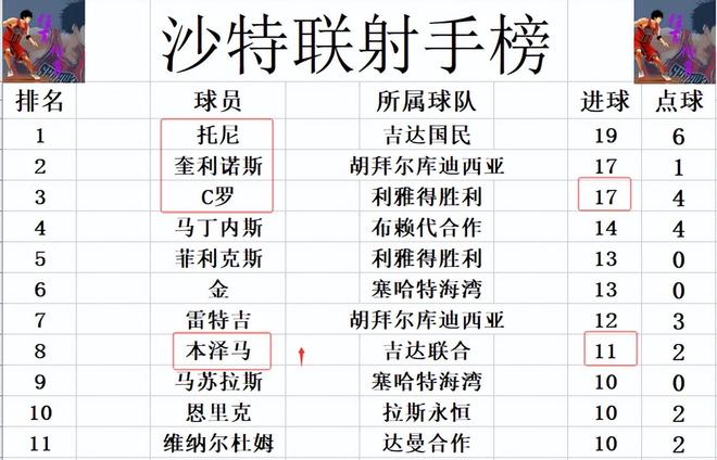 積分榜方面,難怪C羅要郁悶,本澤馬一來就造4球,利雅得新月狂勝,他們暫時(shí)又將和利雅得勝利的差距拉大到4分。吉達(dá)國民先賽贏球后,1分優(yōu)勢將利雅得勝利擠到第3的位置。