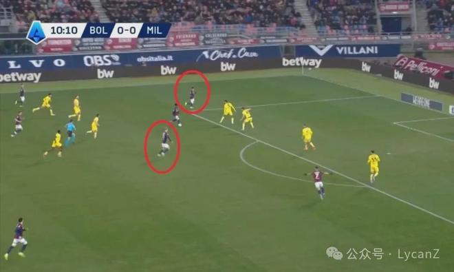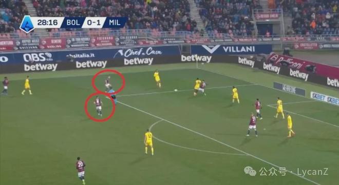 只要破開或者繞過博洛尼亞第一線伐木式的防守,對(duì)手的后衛(wèi)根本對(duì)位不了米蘭這套臨時(shí)拼湊的鋒線,在有限能拿好一點(diǎn)的機(jī)會(huì)里,后續(xù)無論是鋒線自己配合或者分邊路直接傳中,都能產(chǎn)生足夠威脅。