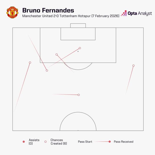 此役主場對陣熱刺,布魯諾-費(fèi)爾南德斯完成了8次射門,打入1球,此外還創(chuàng)造了6次機(jī)會,一共參與了14次射門。