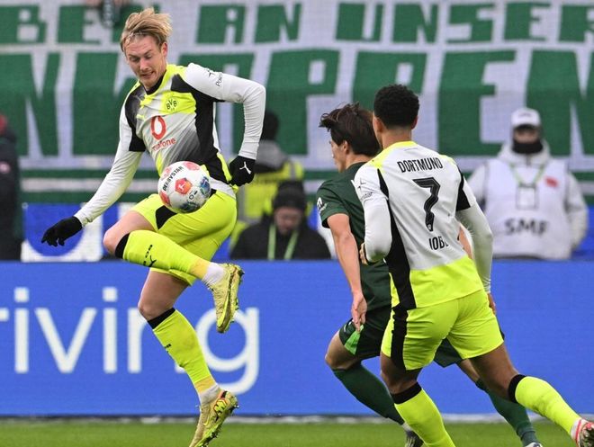 第31分鐘,拜爾在禁區(qū)中路包抄勁射,皮球被擋了一下?lián)糁虚T框彈了出去。真是不可思議。沃爾夫斯堡逃過一劫。7分鐘后,多特蒙德抓住了機會。瑞爾森開出角球,布蘭特在前點頭球攻門,球進(jìn)了!這記頭球難度極大。多特蒙德取得領(lǐng)先。半場補時階段,喬布-貝林厄姆嘗試一腳遠(yuǎn)射,被撲了出去。半場結(jié)束,多特蒙德1-0領(lǐng)先沃爾夫斯堡。
