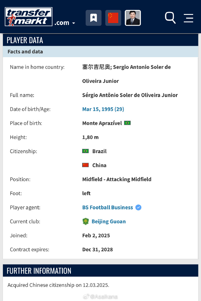 兩年之后,塞爾吉尼奧離開了日本,加盟了長春亞泰。在這里,他跟俱樂部拿到了中甲冠軍,成功升級。到2024年時他已經(jīng)完成了亞泰百場里程碑,算是俱樂部的“名宿”了。因此,他對中國賽場也是格外的熟悉,不管是中甲、中超還是國家隊、亞洲賽事,他都很明白。
