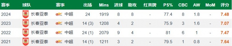 此外,在防守的積極性上也有提升的。2024賽季,他可貢獻場均1.1次搶斷、0.5次攔截及1.1次解圍,三項數(shù)據(jù)在10號位的中超球員中排名靠前。