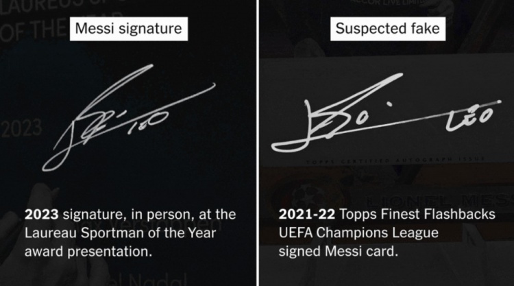 3月27日訊 The Athletic深度報(bào)道了一件涉及梅西簽名球星卡被指為“假簽名”的事件,引發(fā)了收藏界對(duì)于球星簽名真?zhèn)蔚馁|(zhì)疑。