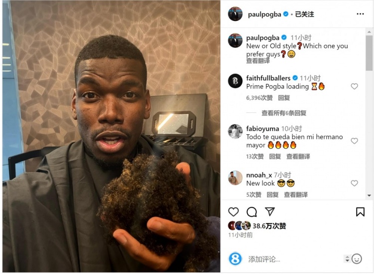 - 博格巴社媒曬理發(fā)照片:新發(fā)型還是舊發(fā)型,大家喜歡哪一個?