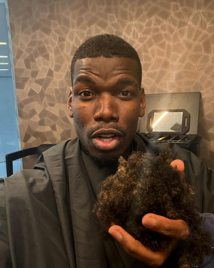 博格巴社媒曬出自己坐在理發(fā)椅子上的照片,他的手里拿著一大團剪下的頭發(fā),配文:“新發(fā)型還是舊發(fā)型,你們更喜歡哪一個?”