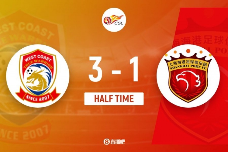 上半場(chǎng)比賽結(jié)束,上海海港客場(chǎng)暫時(shí)1-3落后青島西海岸。