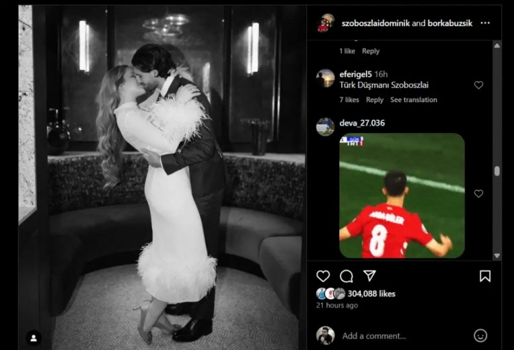 現(xiàn)在這種行為還未結(jié)束,索博昨天曬出自己的結(jié)婚照,評(píng)論區(qū)仍然有很多球迷在刷居勒爾的照片,不少支持索博的球迷則表示:“土耳其愛哭鬼又來了。”