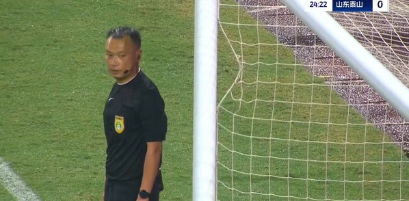 第25分鐘,山東泰山的球網(wǎng)出現(xiàn)問(wèn)題,比賽因此暫停一小會(huì)?!?/p>