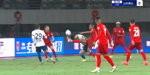 - 半場(chǎng)-楊超聲精彩倒鉤羅德里格傳射 梅州客家暫3-1山東泰山