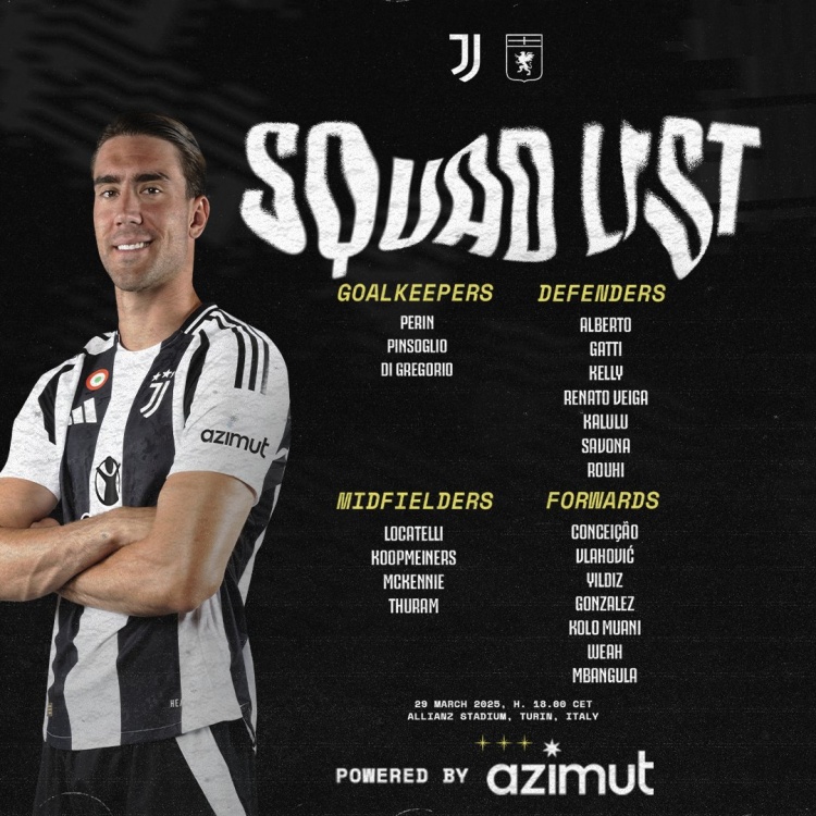 3月29日訊 北京時(shí)間明天凌晨1點(diǎn),尤文將在意甲第30輪比賽中主場對(duì)陣熱那亞,這將是尤文新帥圖多爾的首秀,尤文公布了此役的球員名單,弗拉霍維奇、小孔塞桑在列,坎比亞索、道格拉斯-路易斯缺席。