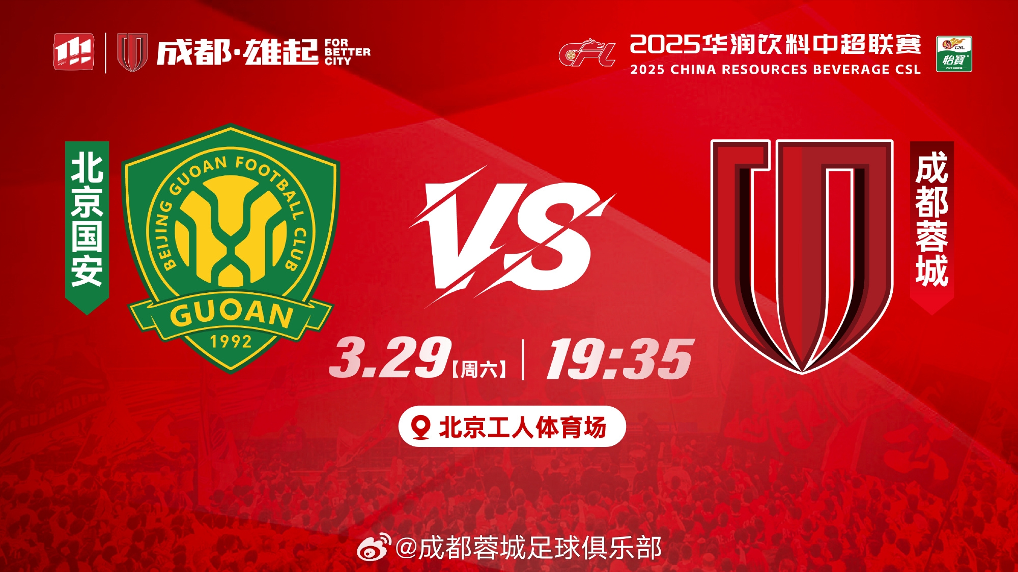 中超前兩輪,北京國安1勝1平積4分,排名中超積分榜第6;成都蓉城1勝1負積3分,排名中超積分榜第11。