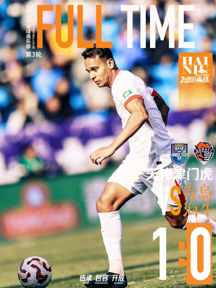 全場比賽結(jié)束,青島海牛客場0-1不敵天津津門虎