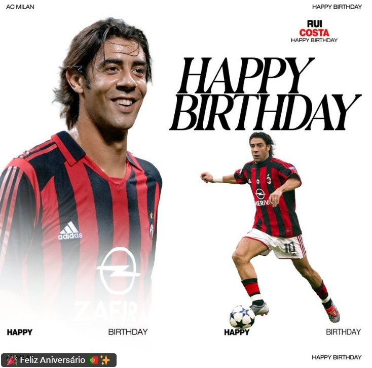 3月29日訊 今天是前葡萄牙國腳魯伊-科斯塔53歲生日,AC米蘭官推也曬出海報(bào)為這位昔日中場大師送上生日祝福。