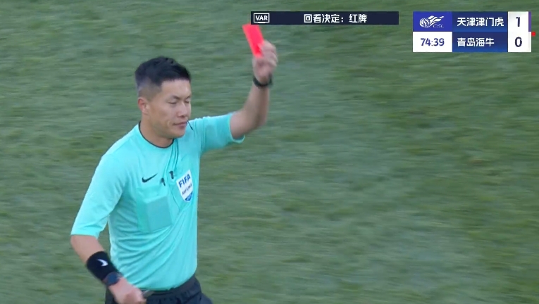 比賽第71分鐘,林創(chuàng)益亮鞋底飛鏟薩爾瓦多支撐腿,裁判先是出示黃牌,后經(jīng)VAR改判將其直紅罰下,海牛僅剩9人應(yīng)戰(zhàn)。此前,在上半場第42分鐘,金洋洋已經(jīng)因鏟球犯規(guī)被直紅罰下。