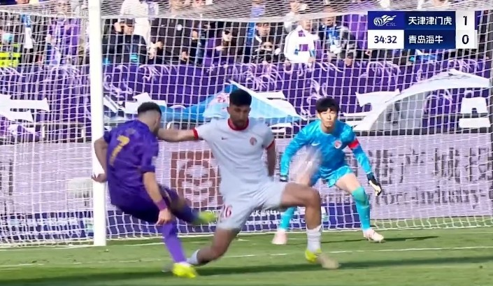 上半場,天津津門虎1-0青島海牛。