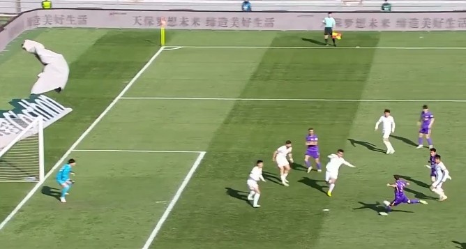 第21分鐘,孫銘謙打門被封堵,巴頓補(bǔ)射破門,但主裁判經(jīng)VAR確認(rèn)后示意進(jìn)球無效?!?/p>