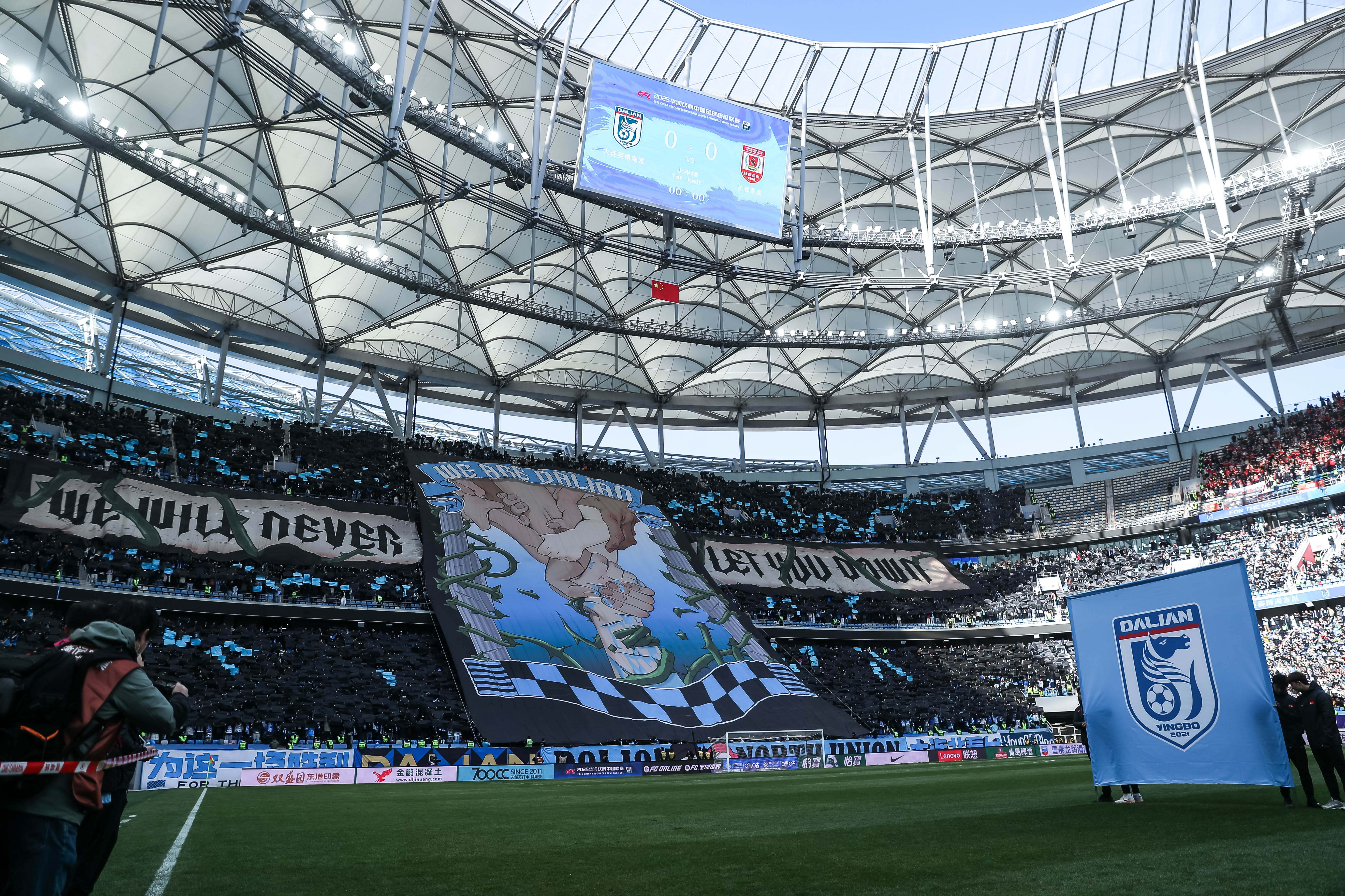 不輸歐洲豪門(mén)!大連英博隊(duì)史中超首個(gè)主場(chǎng)tifo:永遠(yuǎn)不讓你們失望