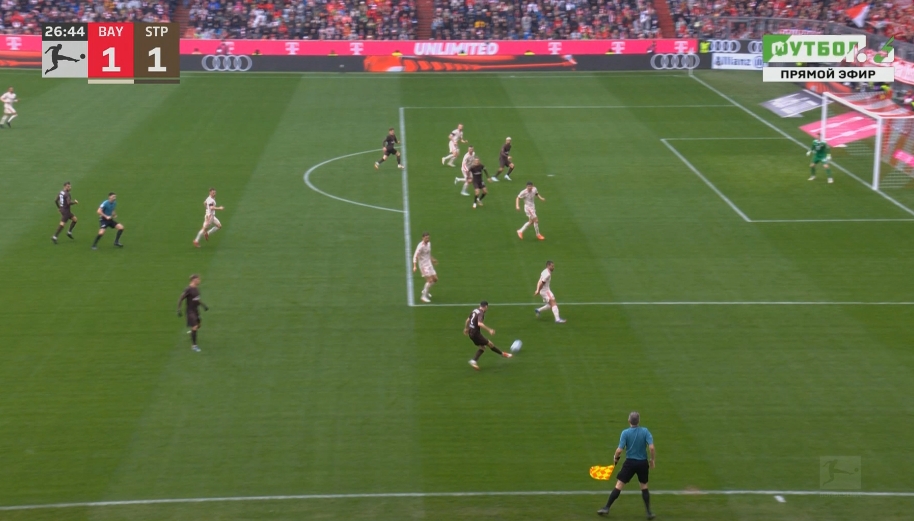 03月29日訊 拜仁v圣保利第28分鐘,拜仁后點(diǎn)漏人!圣保利球員埃利亞斯-薩德輕松包抄破門,拜仁第28分鐘丟球1-1圣保利!