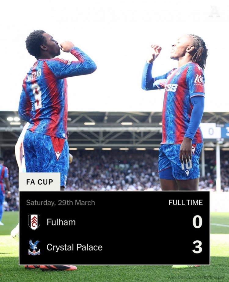 - 水晶宮3-0完勝富勒姆晉級(jí)足總杯半決賽,近6個(gè)客場(chǎng)全勝且一球不失