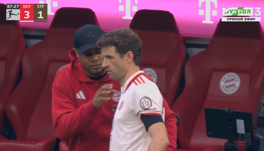 伊藤洋輝是第58分鐘替換格雷羅登場(chǎng)的,拜仁第85分鐘用完了最后的換人名額。孔帕尼也明白這一點(diǎn),他把穆勒叫到場(chǎng)面交代一下站位。