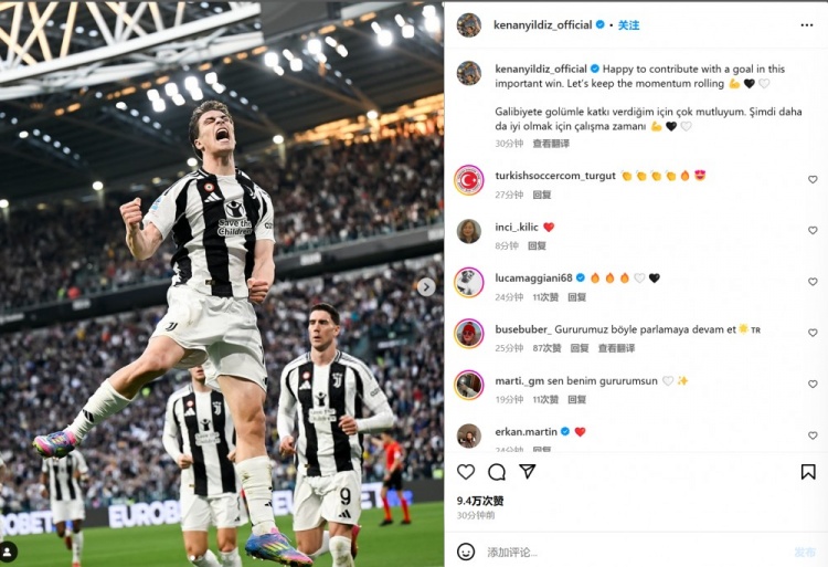 3月30日訊 尤文在本輪意甲1-0擊敗熱那亞,圖多爾取得執(zhí)教后首勝,打進(jìn)制勝球的伊爾迪茲也通過(guò)社媒曬照慶祝。