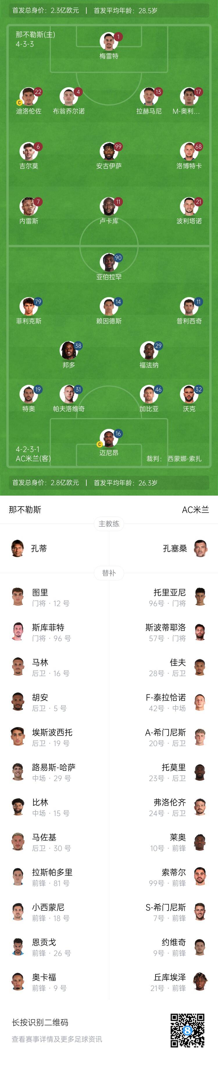 - 米蘭vs那不勒斯首發(fā):亞伯拉罕、菲利克斯、普利西奇出戰(zhàn)