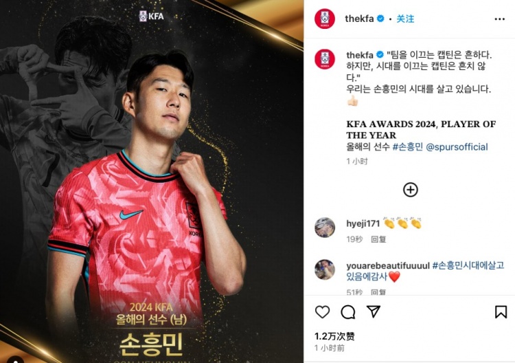 - 官方:孫興慜當選韓足協(xié)2024年度最佳球員,第8次獲得該獎項