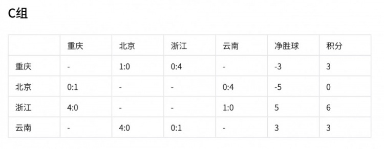 浙江隊(duì)已憑借6分和5個(gè)凈勝球提前出線。重慶和云南同積3分,重慶凈勝球?yàn)?-3,云南凈勝球?yàn)?,北京積0分已無緣出線。最后一輪重慶與云南的直接對話成為焦點(diǎn),根據(jù)規(guī)則,誰獲勝誰將獲得小組第二出線;若雙方打平,雙方各積4分,云南將因凈勝球優(yōu)勢獲得小組第二,重慶則積4分獲小組第三。浙江與北京的比賽勝負(fù)對大局無影響。